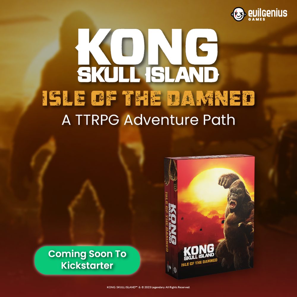 Today I am happy to announce that we’re launching our sophomore project on Kickstarter in May. For our second project, we are going deep on two of our favorite properties — Kong and Pacific Rim. Our Cinematic Adventures are just the beginning. Now, we’re introducing Cinematic Adventure Paths (CAPs) — long-form adventures that take your characters from Level 1 to Level 10 across around 100 hours of gameplay. In both CAPs, you’ll go deep into the lore of each world as we introduce new canon into these franchises.